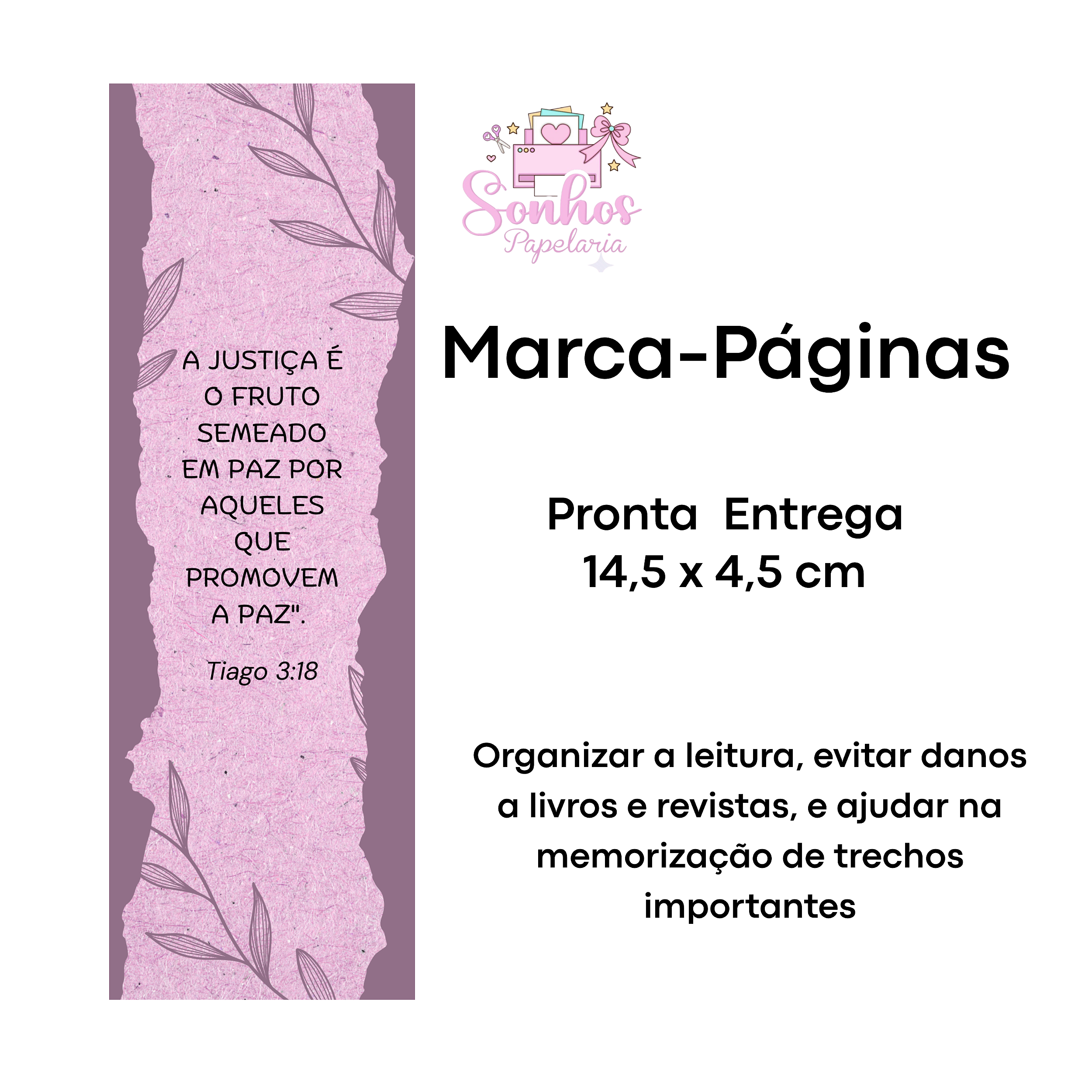 Marcador de Páginas - A JUSTIÇA É O FRUTO | KIT C/ 8 unid ( Vergê 180g / 14,5 x 4,5cm )